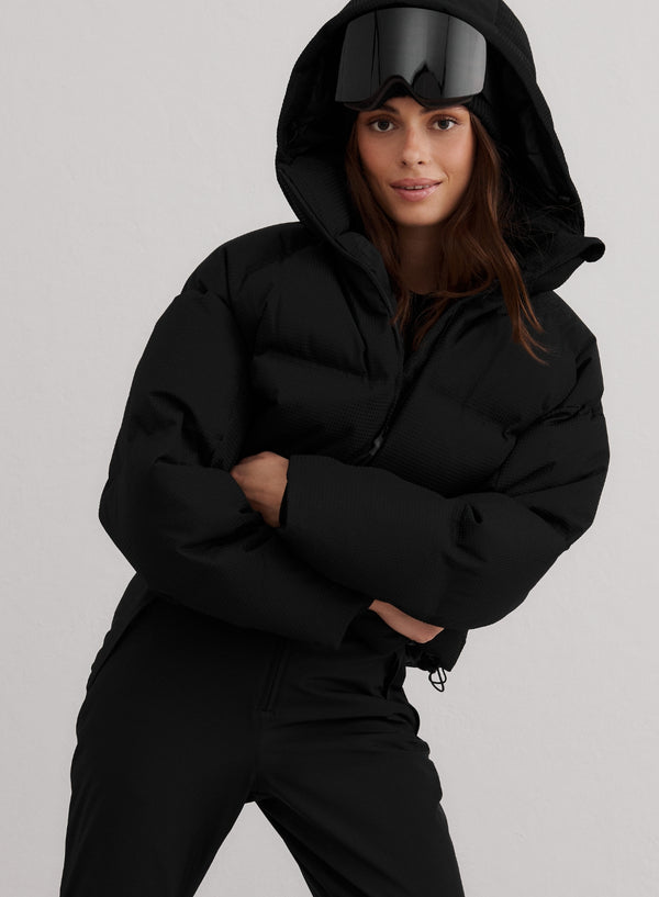 The length is measured from the inner shoulder down to the jacket's longest point at the front.